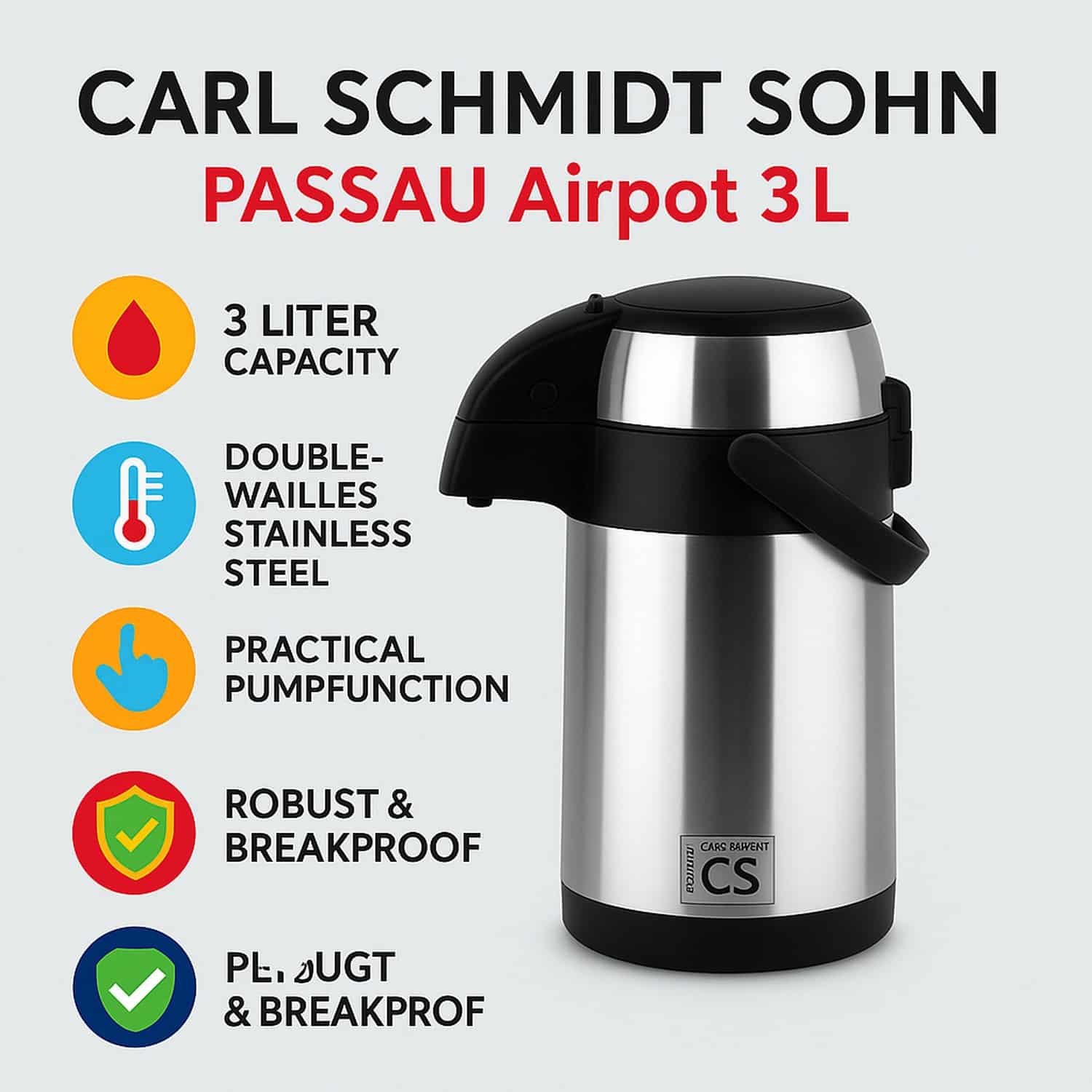 CARL SCHMIDT SOHN PASSAU Airpot 3L – Edelstahl Getränkespender