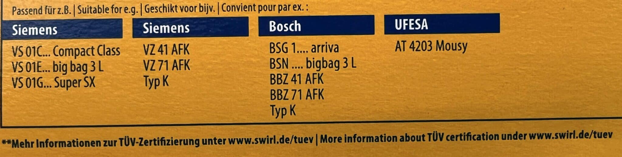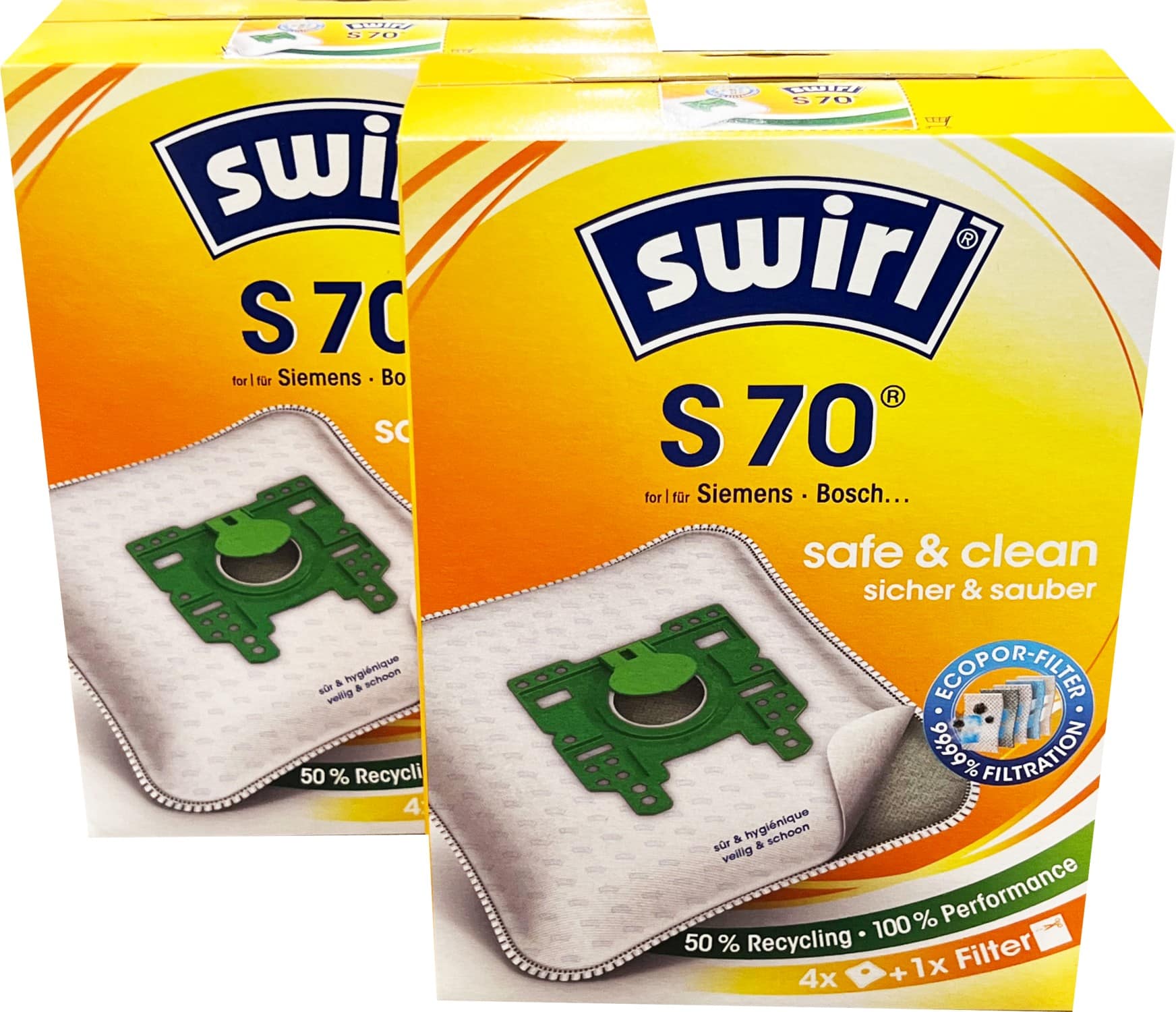 8x Swirl Staubsaugerbeutel S70 Siemens Bosch + 2 Abluftfilter NEU