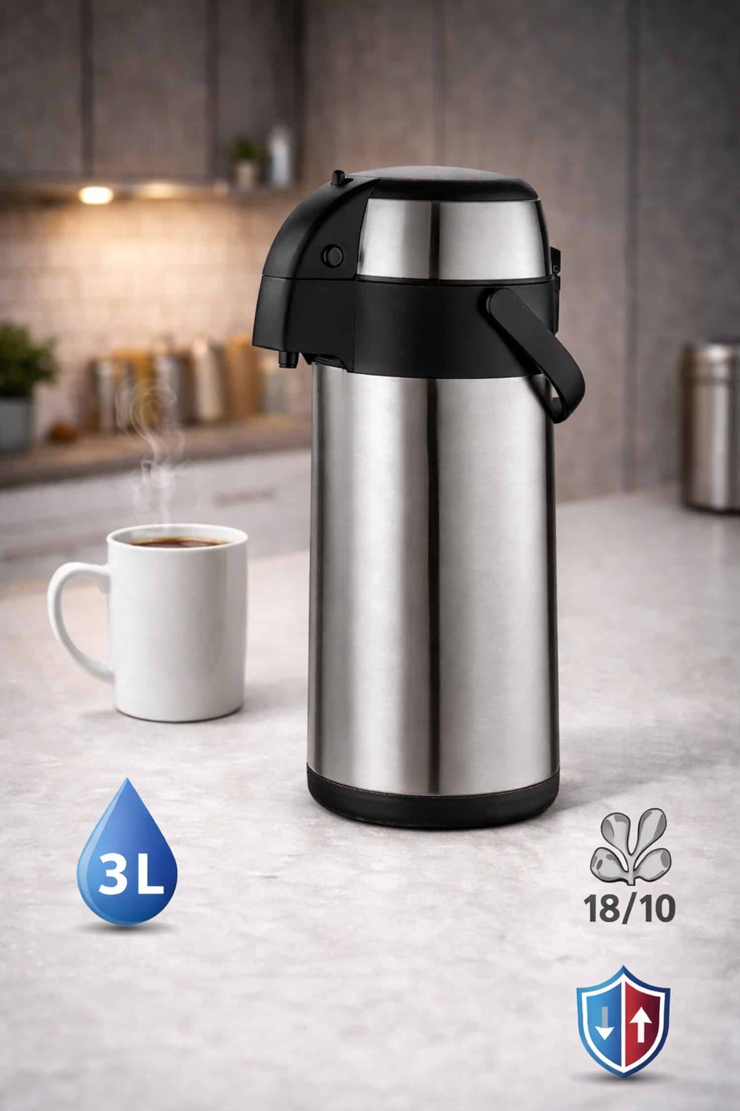 • Airpot / Pumpkanne – komfortables Ausgeben per Pumpmechanismus