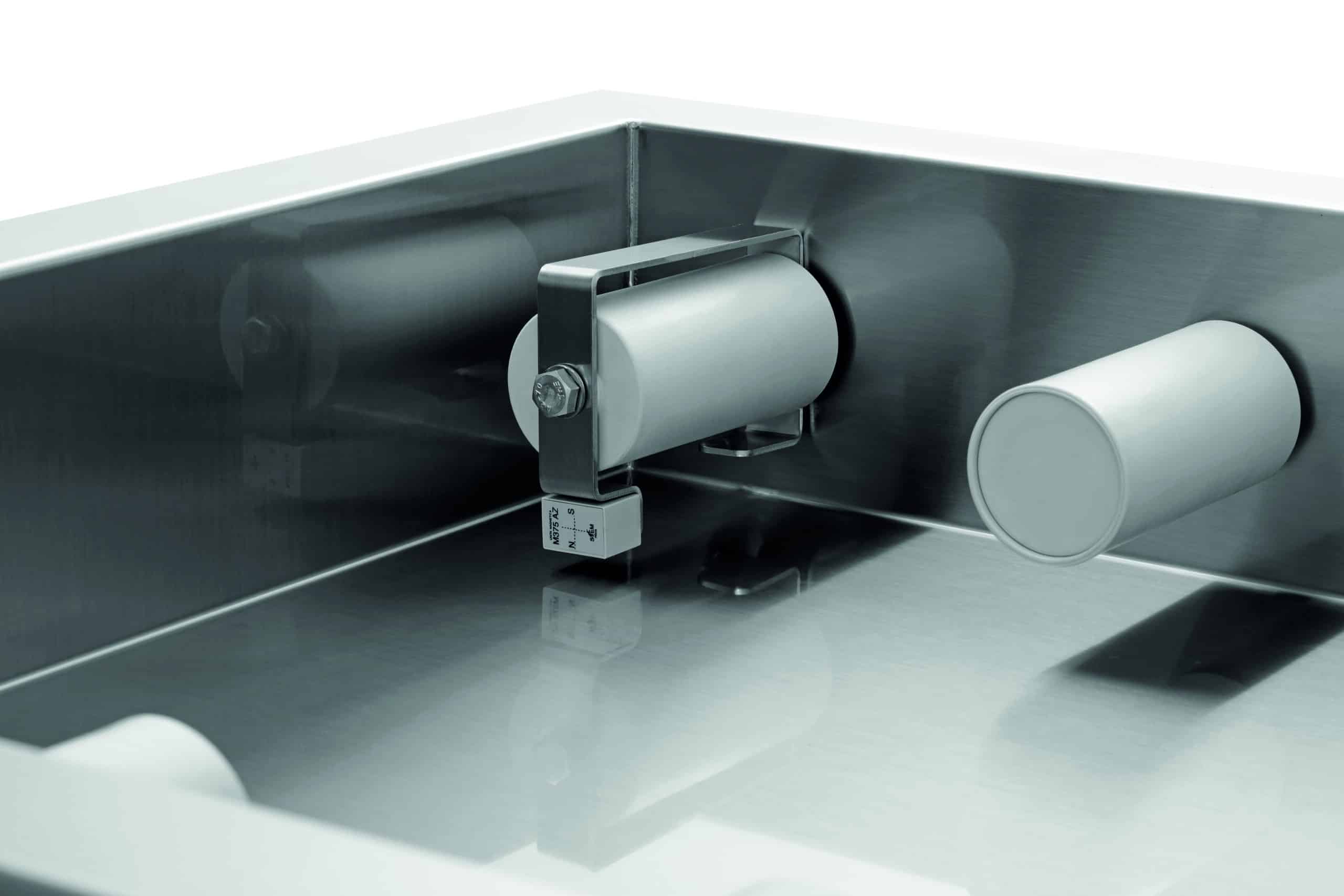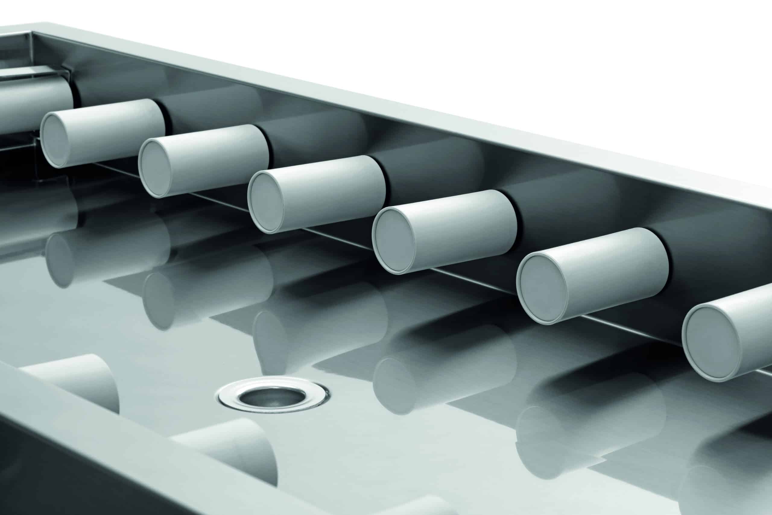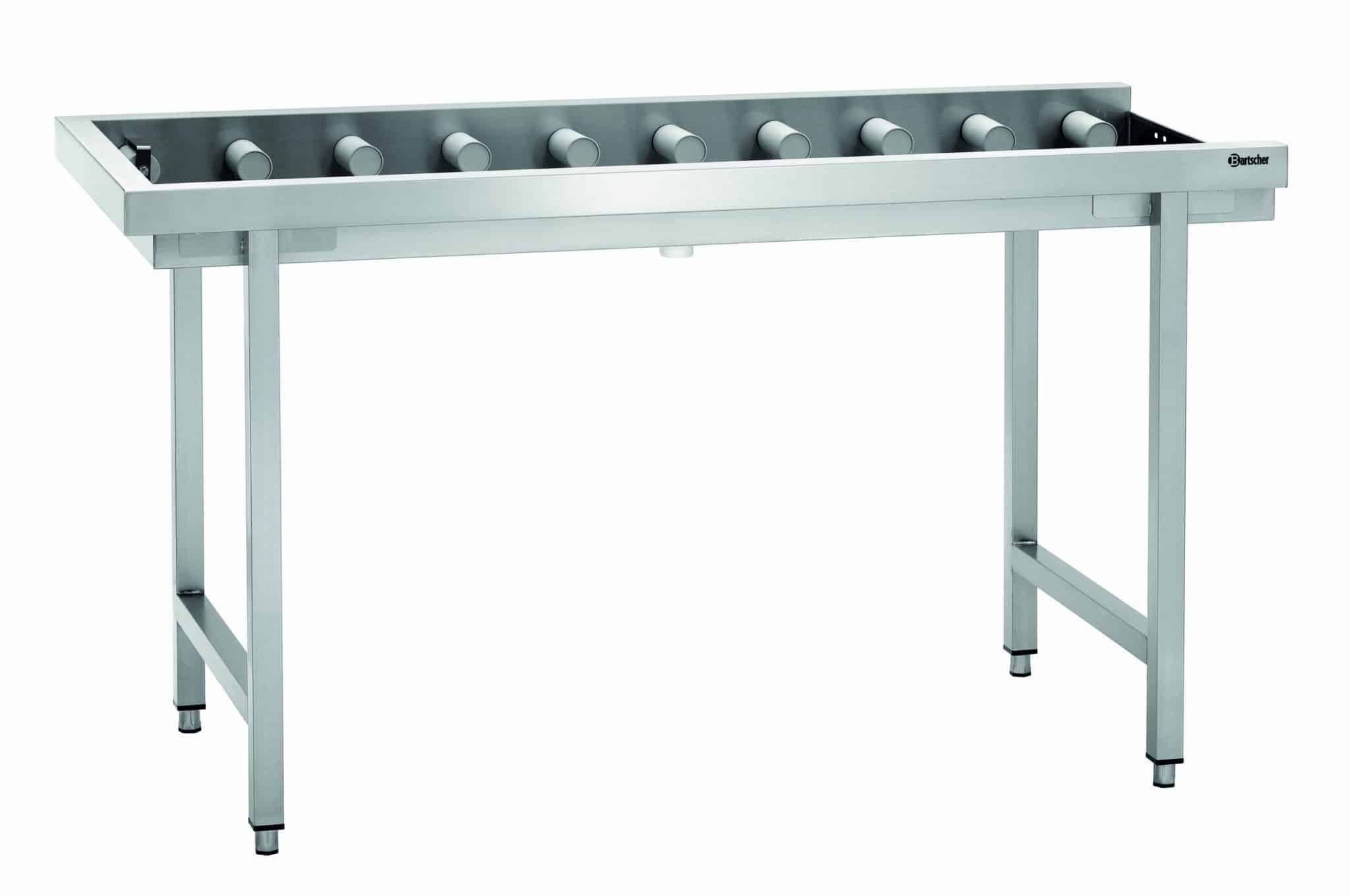 Der Ablauftisch mit Transportrollen ist die perfekte Ergänzung zur Korbtransportspülmaschine KTS5000. Für einen reibungslosen Betrieb sorgen die 20 Transportrollen. Dank des integrierten Sensors stoppt das Transportband der KTS500 automatisch bei einem vollen Ablauftisch.