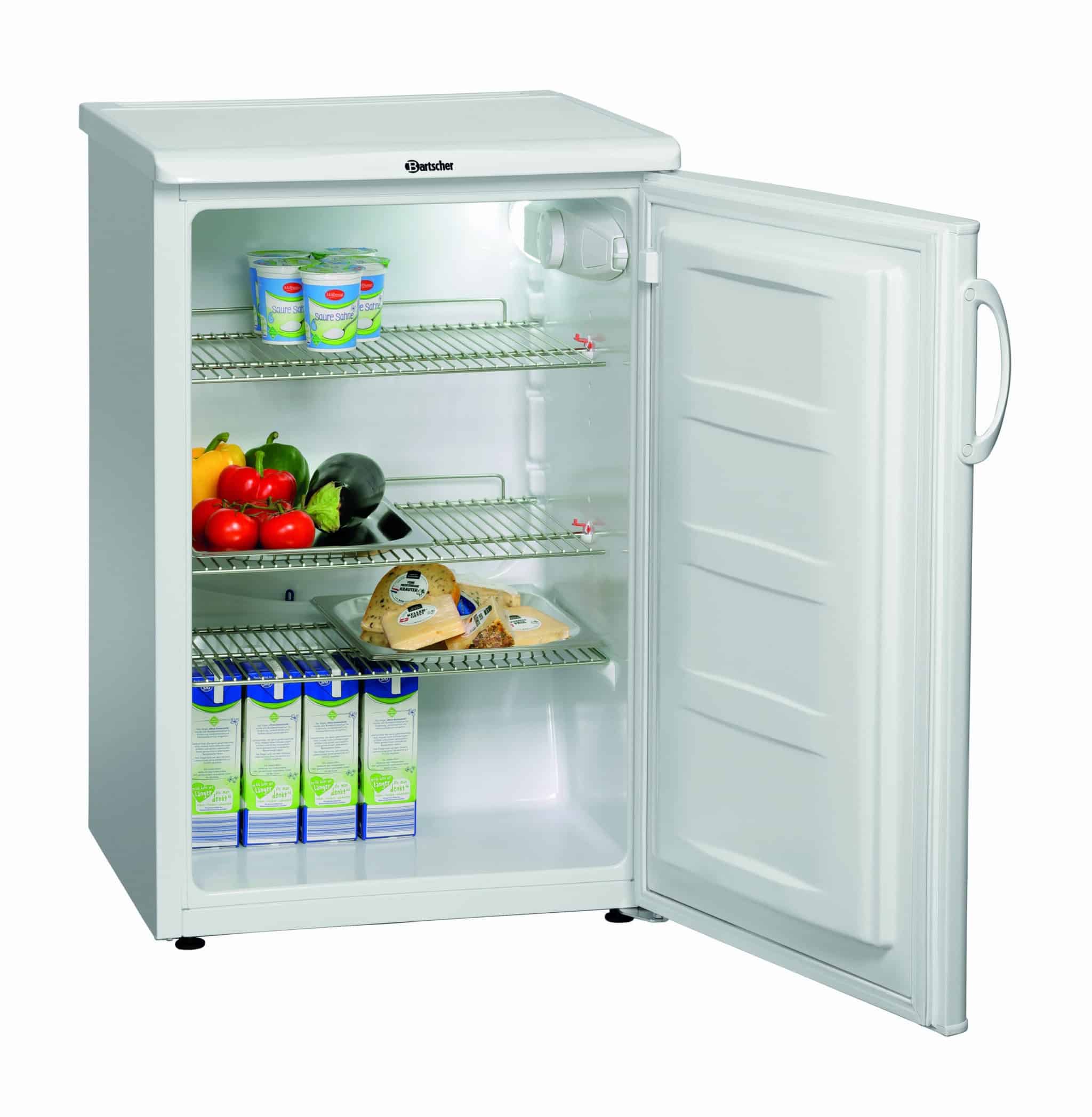 Der kompakte Kühlschrank bietet Lagerplatz auf kleinem Raum. Auch bei höheren Umgebungstemperaturen bleibt Lagerware gut gekühlt.