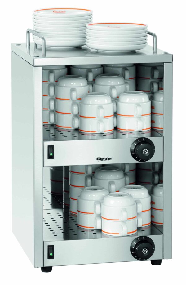 Vorgewärmte Tassen für mehr Kaffeegenuss – Die getrennt schaltbare Wärmezufuhr lässt sich für beide Ebenen stufenlos regulieren.