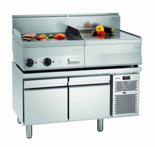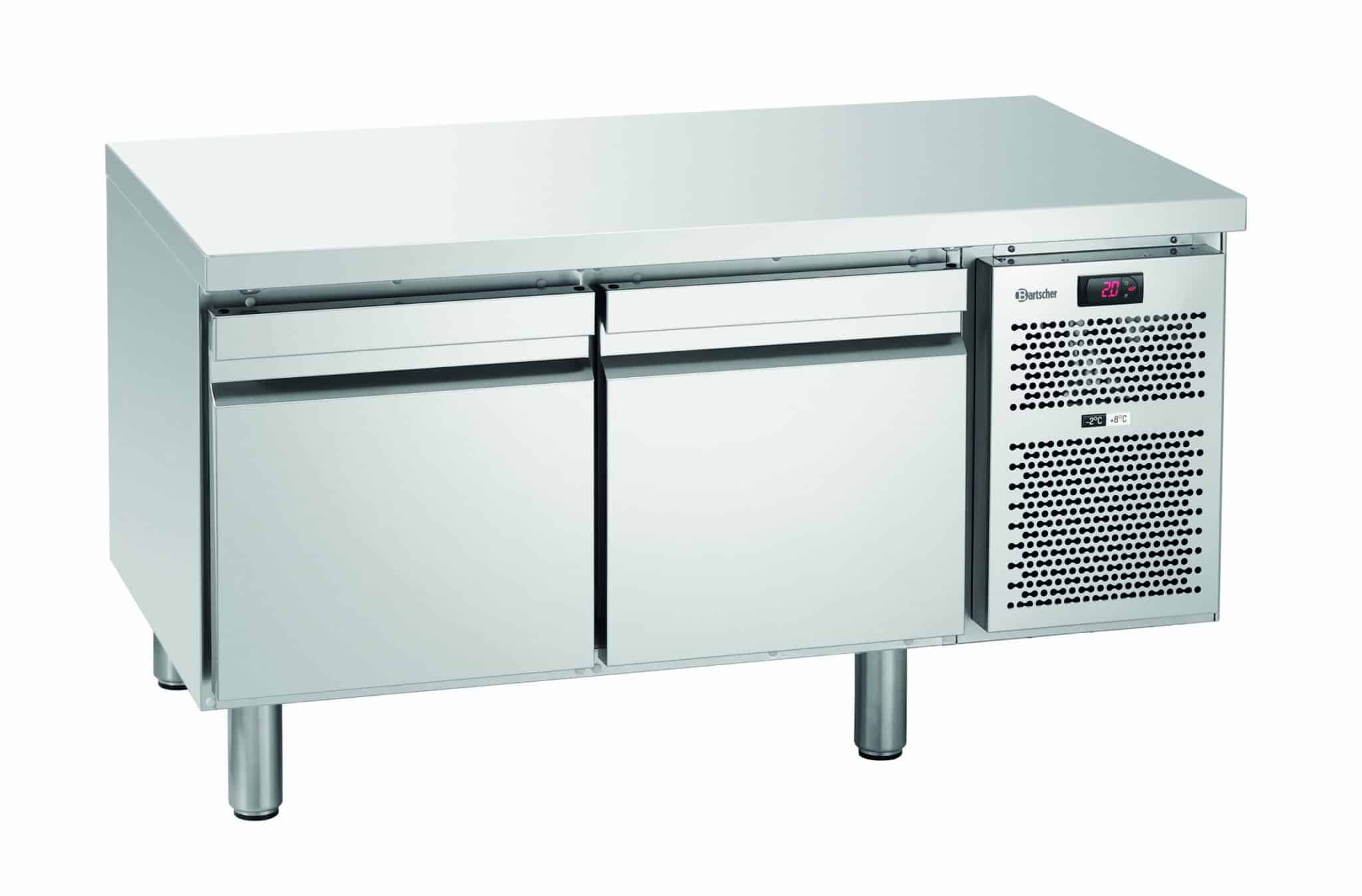 Der unterbaufähige Kühltisch mit 2 großen Schubladen bietet GN-Behältern mit bis zu 200 mm Tiefe Raum. Durch den Temperaturbereich von -2˚C bis +8˚C können verschiedenste Lebensmittel gekühlt werden.