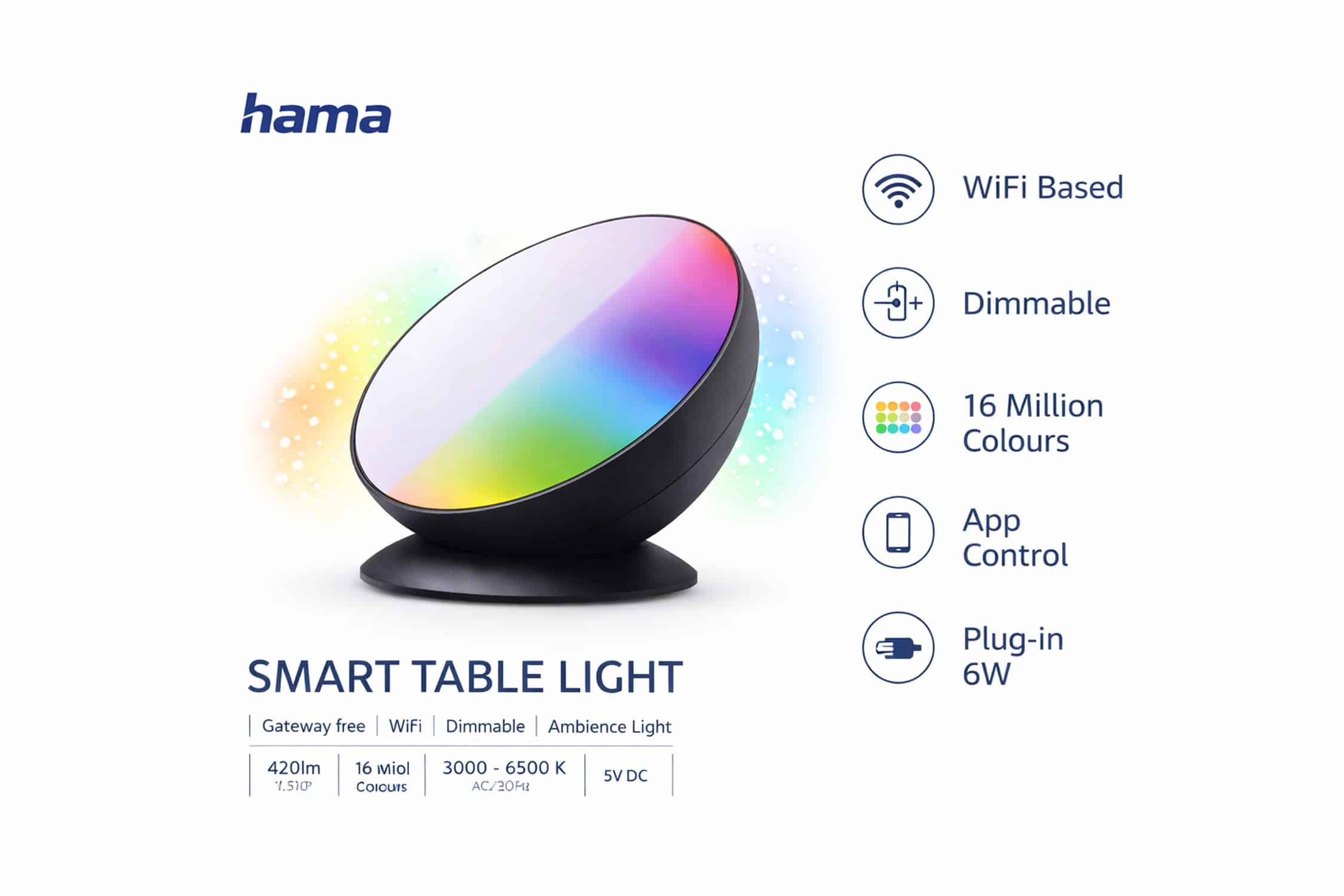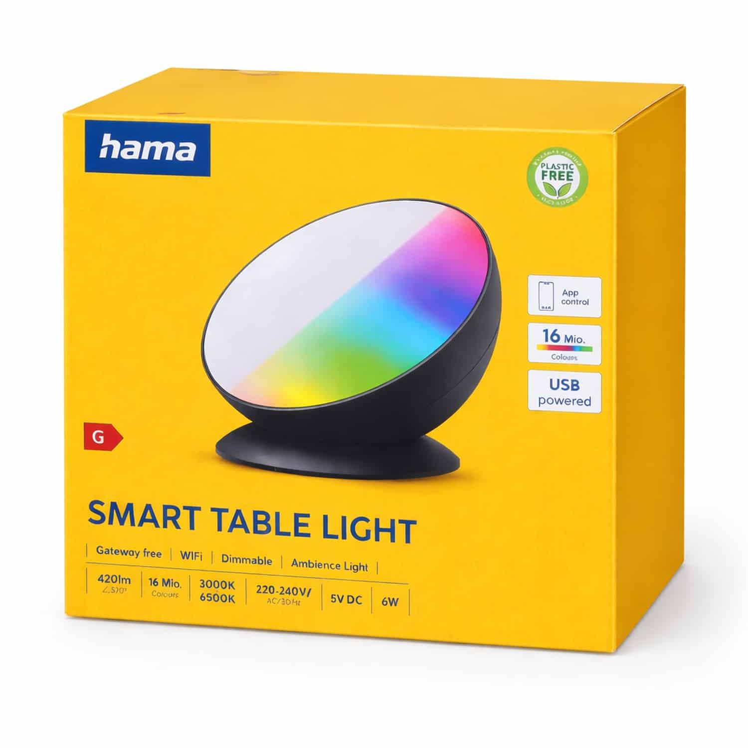 Keywords: Hama 176664, smarte LED Tischleuchte, RGBW Lampe, WLAN Lampe, App Steuerung, Alexa, Google Assistant,