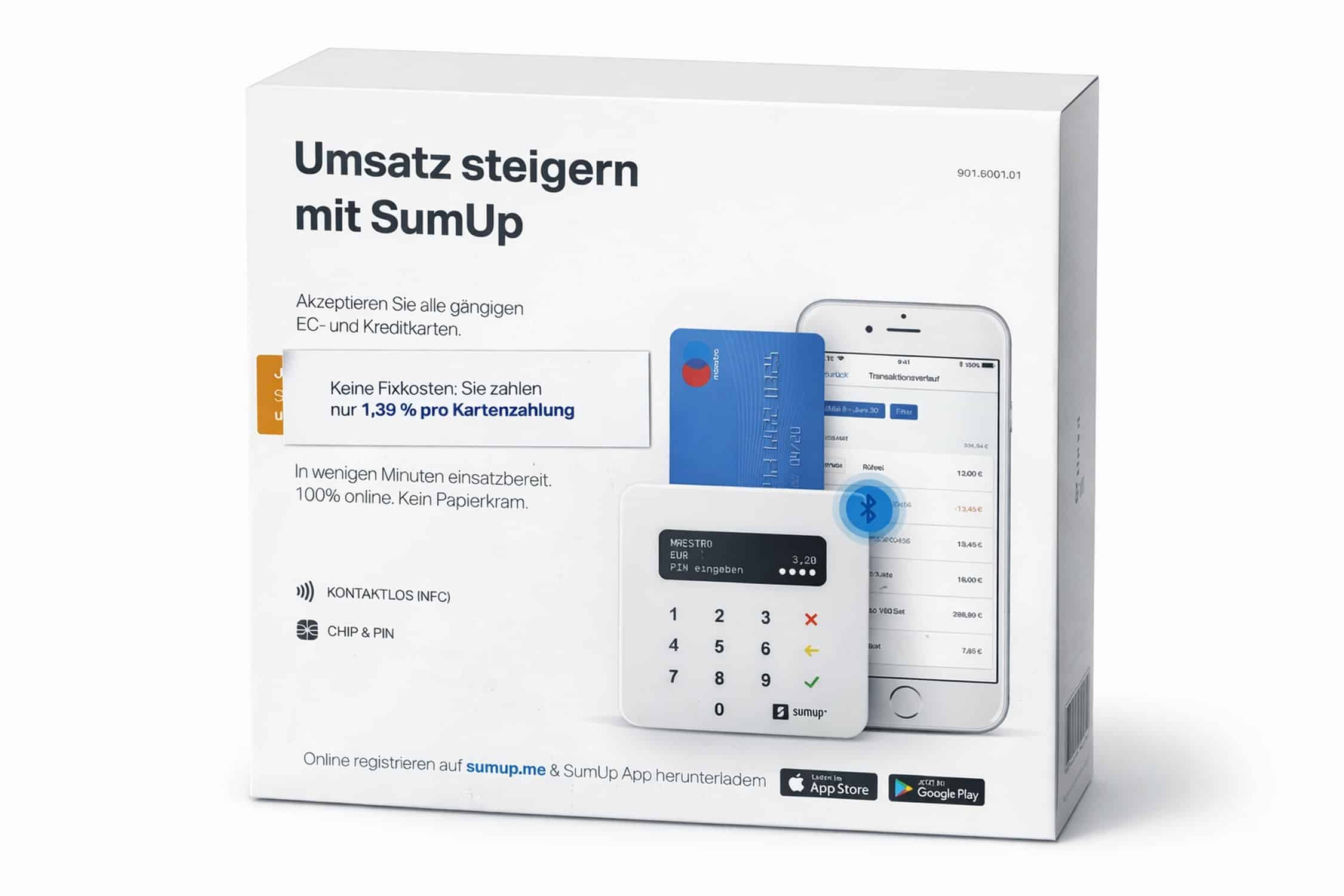 Verbindung zur SumUp App erfolgt per Bluetooth (Smartphone/Tablet).