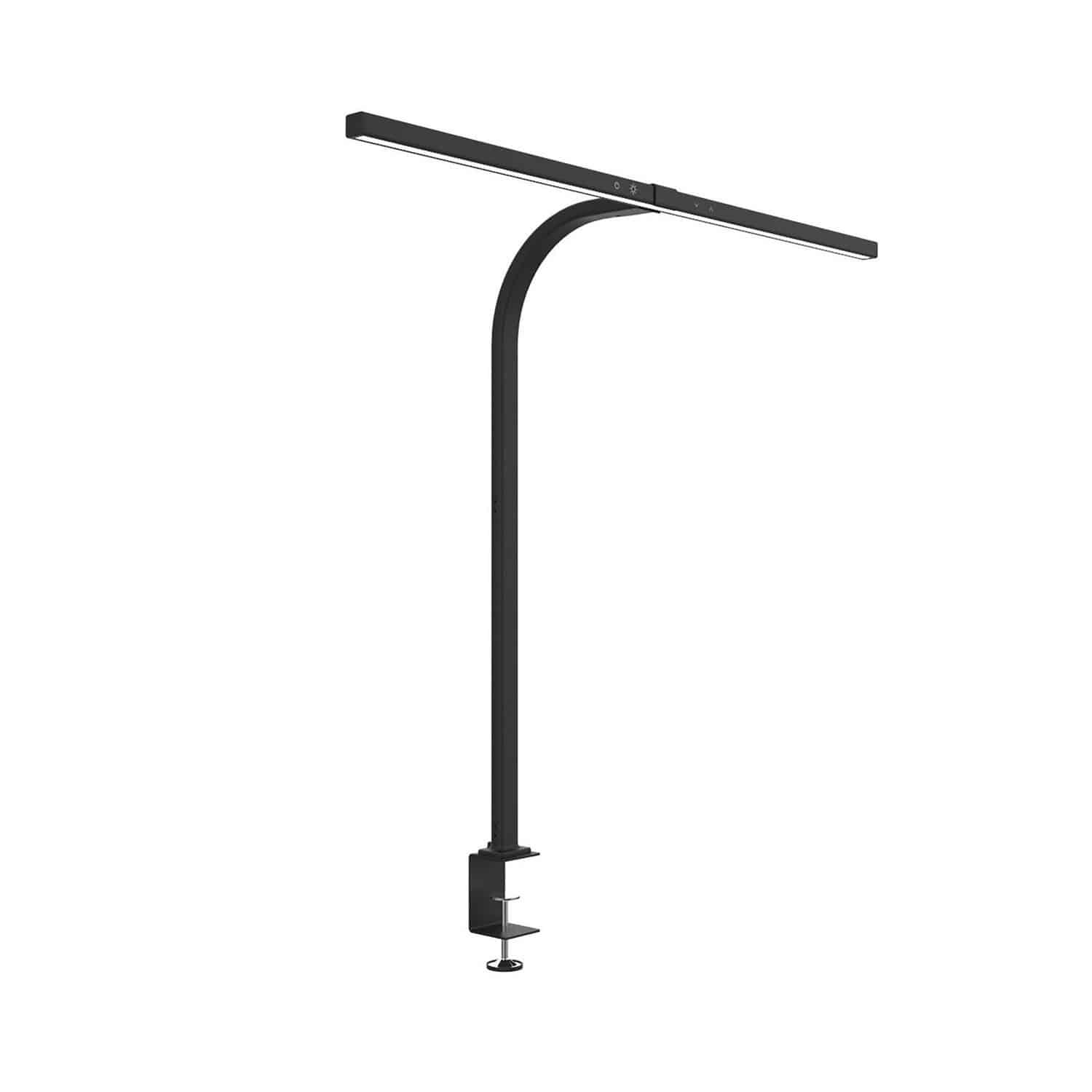 schwarz, die dimmbaren LEDs sowie die äußerst platzsparende Tischklemme